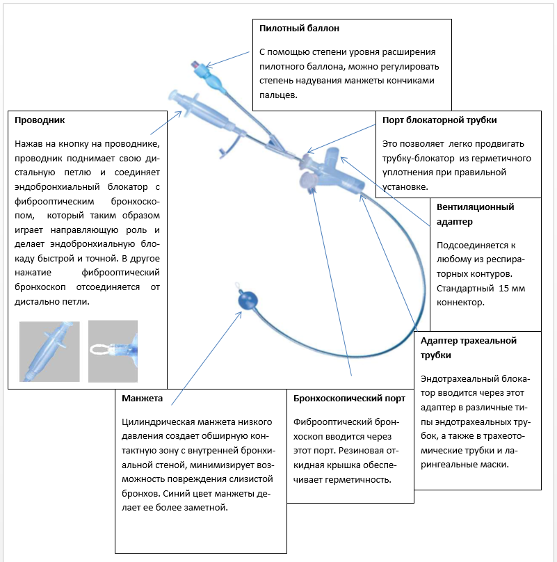 - эндобронхиальный блокатор предназначены для вентиляции одного легкого (ОВЛ) при тора-кальной хирургии, с использованием эндотрахеальной трубки и фиброоптичского бронхоскопа.